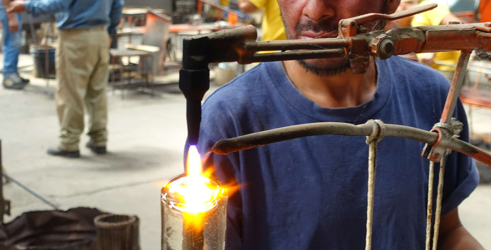 Am Tag darauf besuchen wir eine Glasbläserei. Es ist eine beeindruckende Produktion. Mit viel Geschick und noch richtigem Handwerk produzieren hier ca. 10 Männer verschiedene Gläser, Krüge und Vasen. Es ist viel Betrieb, wir fühlen uns wie in einem Bienenstock. Frank darf sein Geschick auch mal unter Beweis stellen und selber eine Glaskugel blasen. Brauchbar ist diese schlussendlich jedoch nicht und landet schnell auf dem Scherbenhaufen. Als Erinnerungsstück kaufen wir im nebenstehenden Laden einen Wasserkrug, welcher uns an diesen Moment erinnern wird.