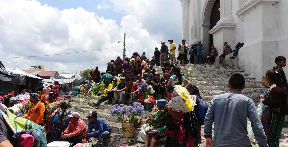 Am Sonntag besuchen wir den Landesweit bekannten Markt in Chichicastenango. Wir sind wie alle anderen Touristen mit einem Minibus unterwegs. Den ganzen Tag schlendern wir durch die Gassen. Da es Pfingstsonntag ist sehen wir mehr per Zufall eine Prozession, welche durch den Markt führt. Natürlich besichtigen wir die nahe gelegene Kirche. Das innige Beten in der Kirche zeigt, wie gläubig die Guatemalteken sind. Auf den Knien kriechen die gläubigen den Gang bis zum Altar und sprechen ihre Gebete. Auch wir zünden einige Kerzen für unsere liebsten Menschen an.
